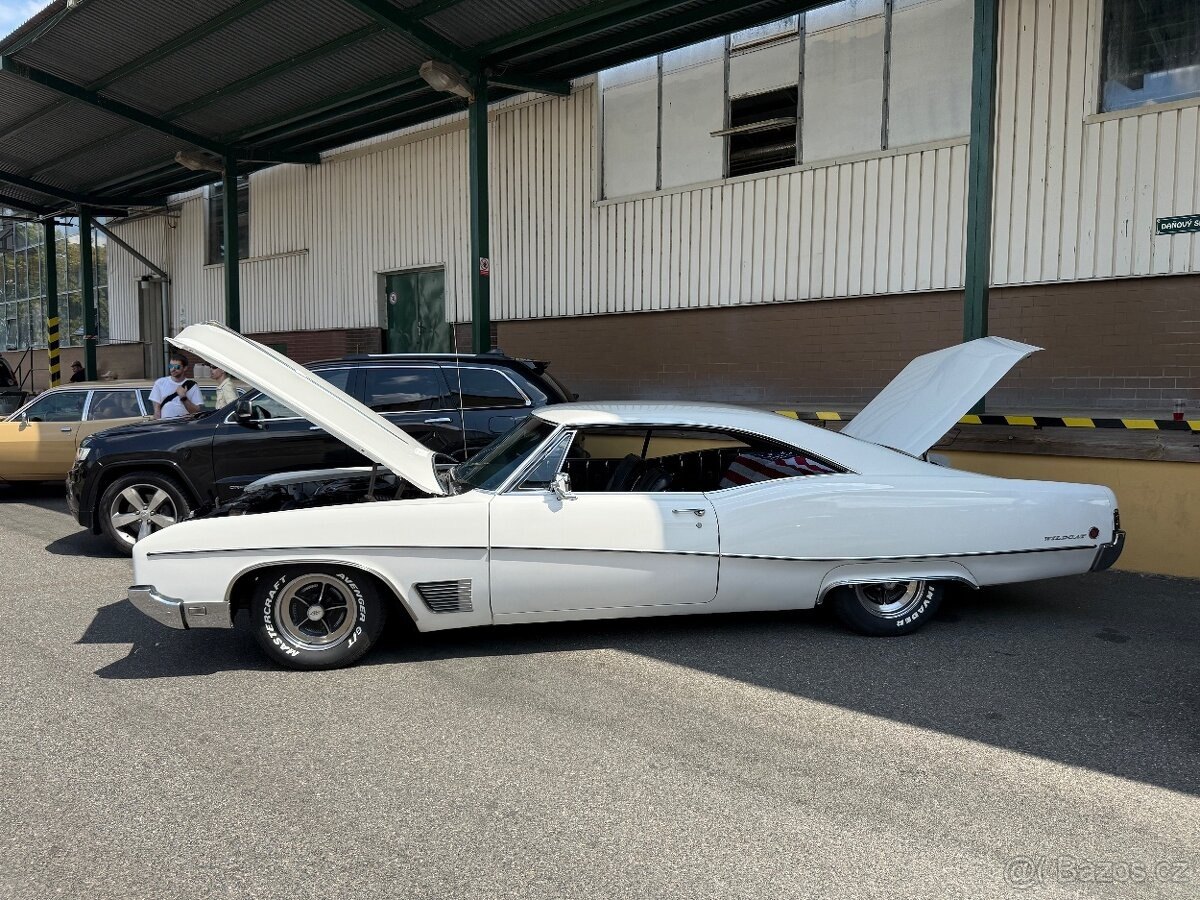 Nabízím k prodeji svého veterána Buick Wildcat z důvodu obměny vozového parku, r.v. 1968, motor 7.0, výkon 365k, 3 st. automat, řadí hladce, arktická bílá, najeto 47tis mil. Původní stav, krásný původní interiér v černé barvě. Dvoudvéřové kupé, které není tak časté a všude budí obdiv. Podvozek ošetřen stabilizátorem rzi a nátěrem, pravidelná výměna oleje 20W50, bez úniku kapalin. Do budoucna zajímavá investice. Pouze vážní zájemci, rozumné domluvě se nebráním.