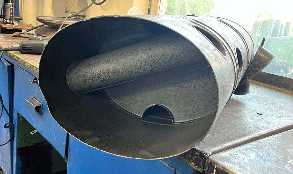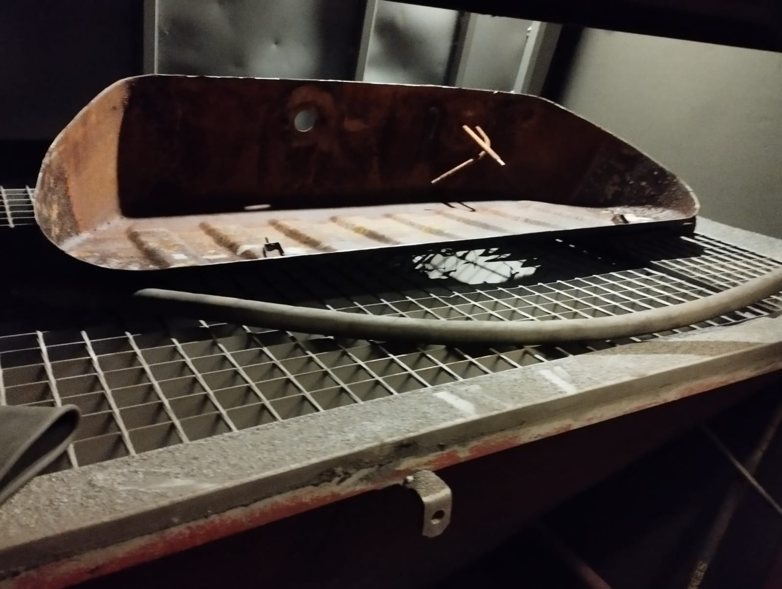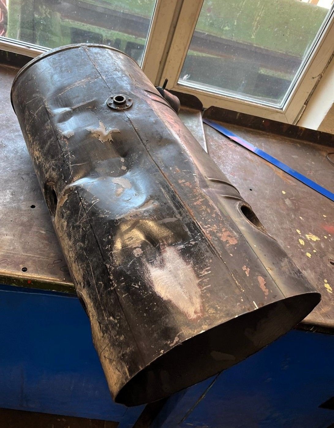 Nádrž Mercedes (rozříznutá) - před odbourání koroze tryskáním v pískovačce