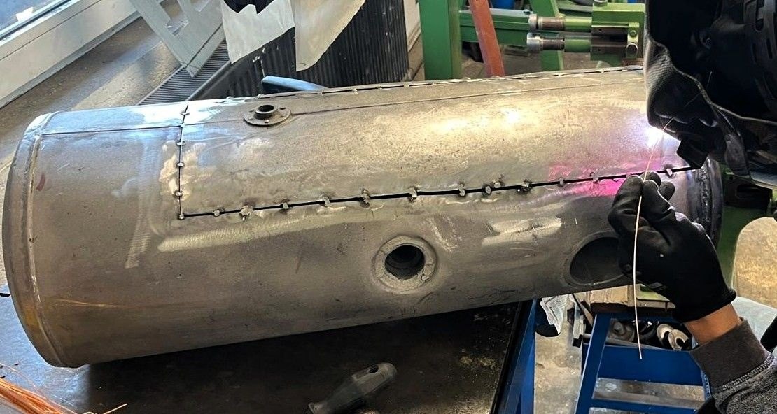 Nádrž AERO 30 - po výměně části pláště, finální úpravy cínováním
