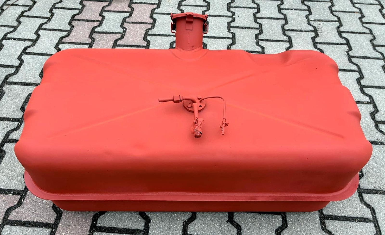 nádrž Škoda 1000 MB (rozříznutá) - antikorozní nátěr odolný proti benzínu