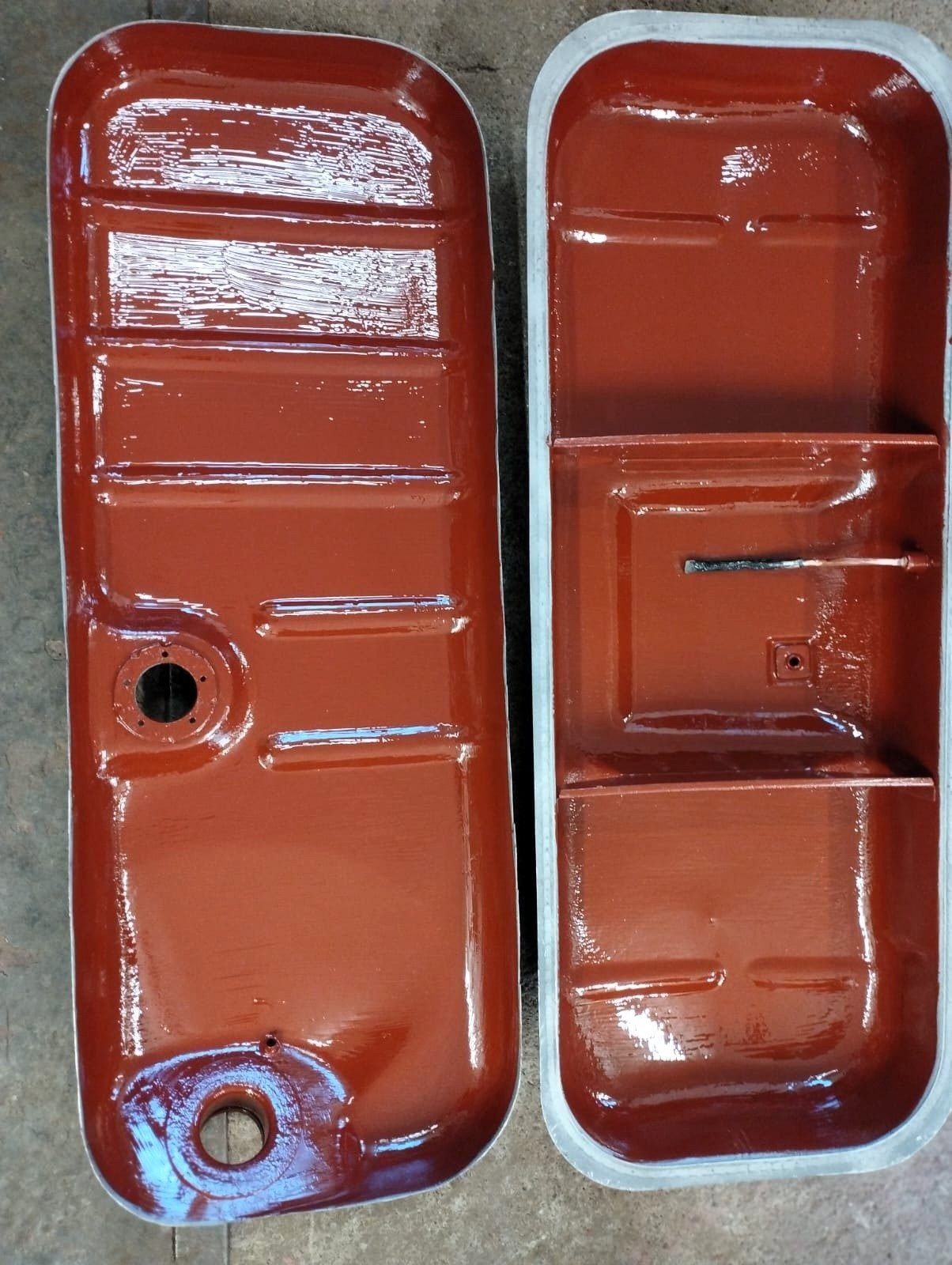 Nádrž Mercedes r.v.1955 (rozříznutá) - ochranný antikorozní nátěr odolný proti benzínu