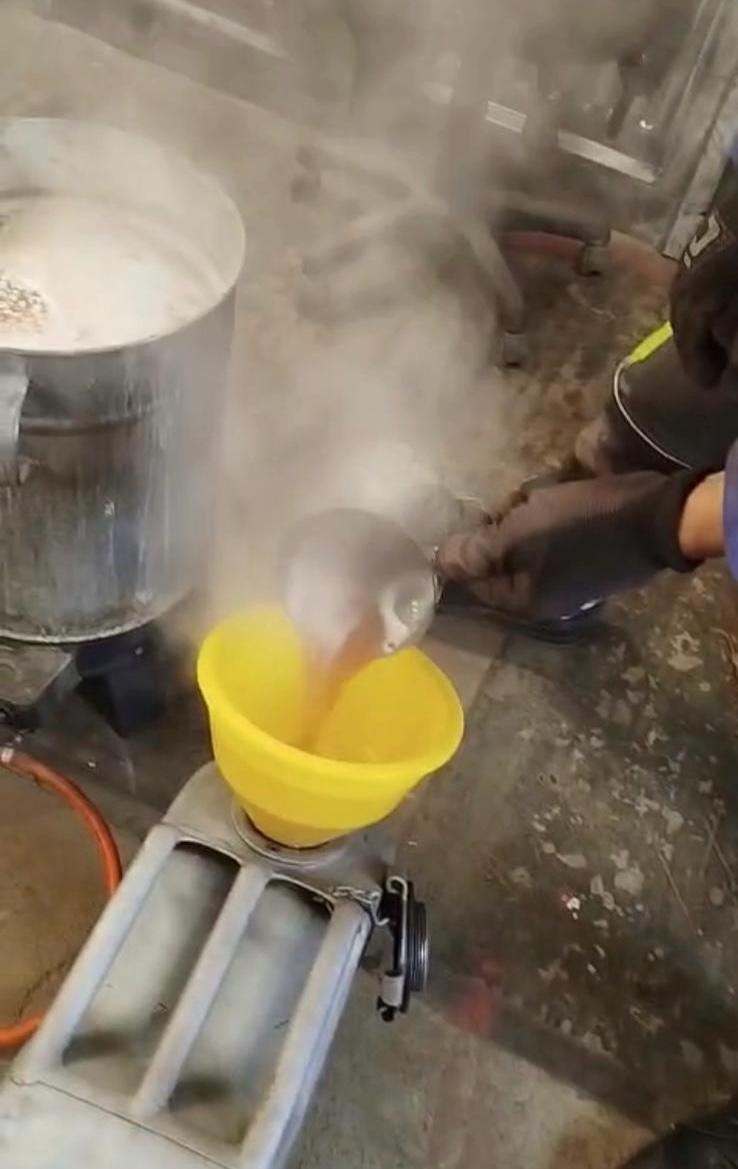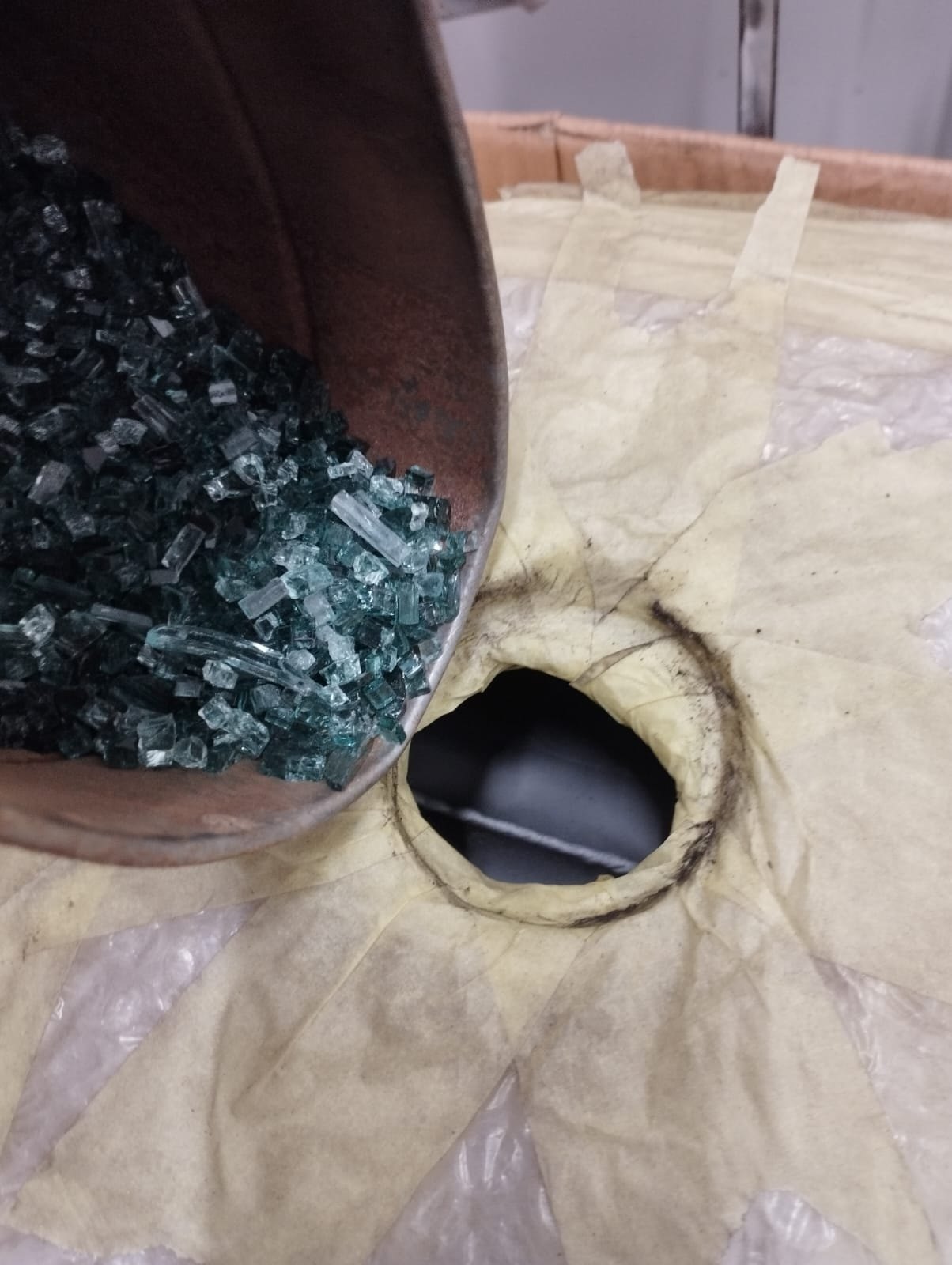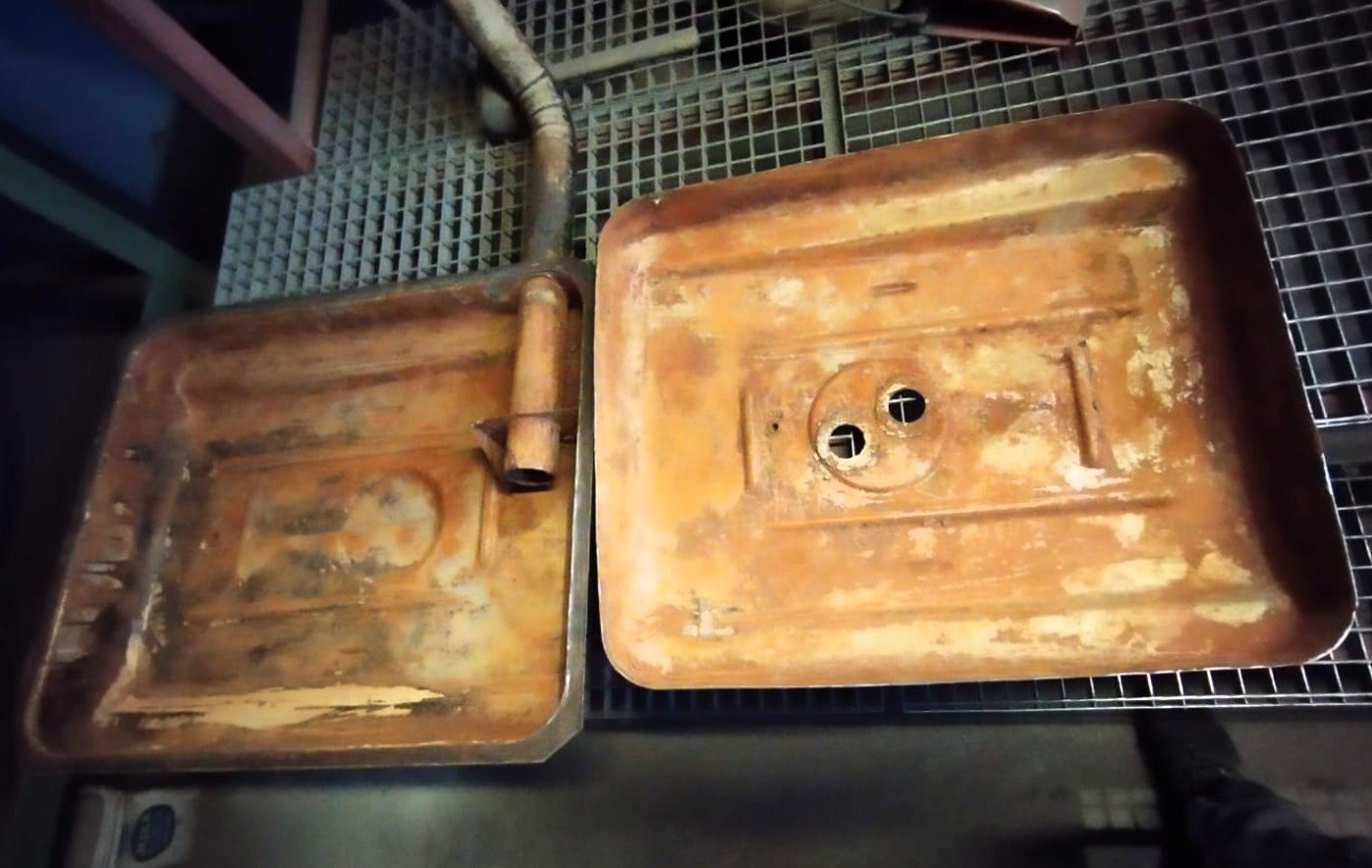 Otevřenou nádrž tryskáme v naší pískovačce z vnějších a vnitřních stran. Nádrž, která není třeba otevírat, se tryská pouze z vnější strany. Vnitřní část následně naplníme rozbitým kaleným sklem a necháme ji rotovat na vymílacím stroji, abychom efektivně odstranili korozi.
