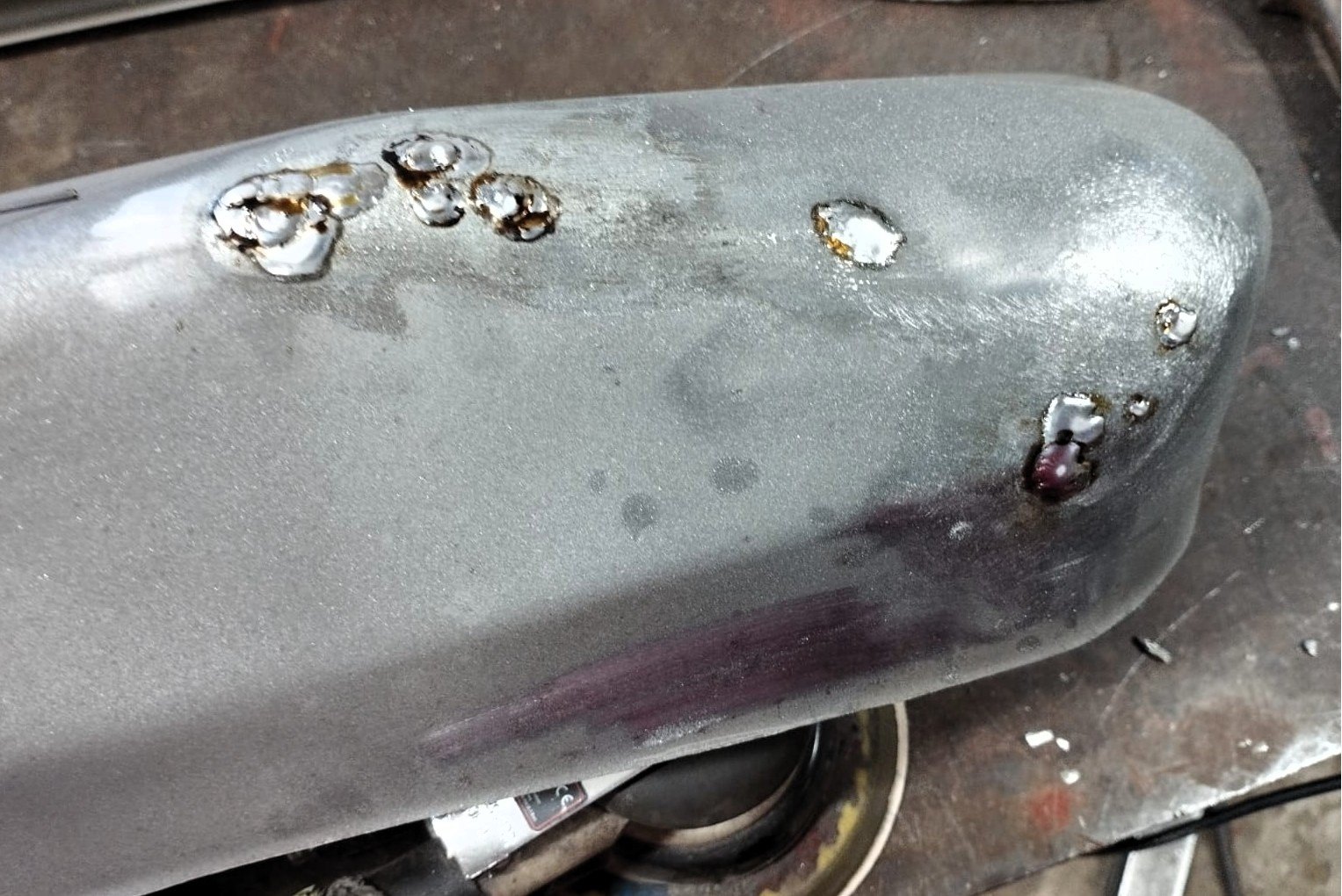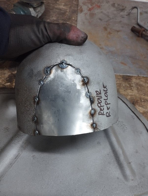 Opravu případných defektů řešíme cínem nebo tmelem. Místa, kde je plech nádrže příliš tenký či jinak poškozený, řešíme vystřihnutím a navařením nového plechu.